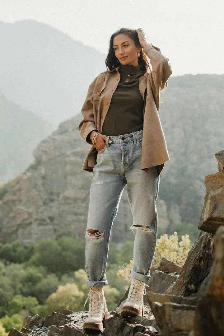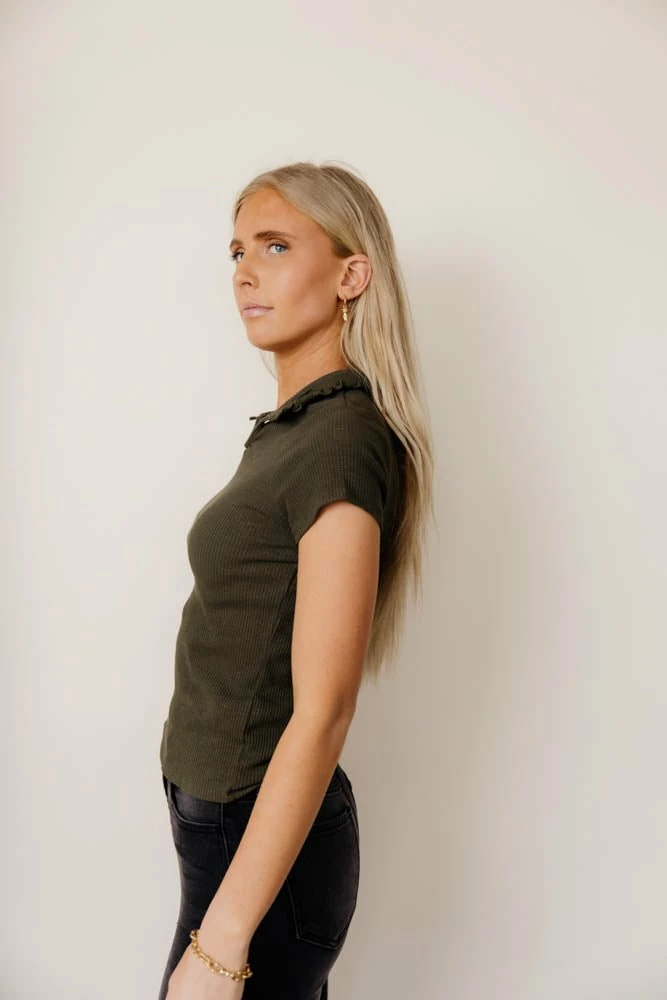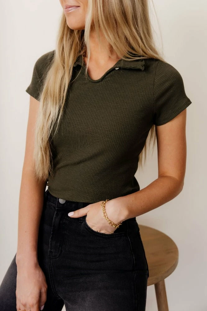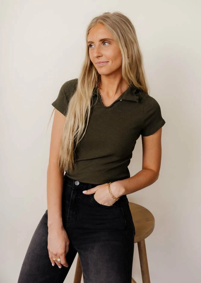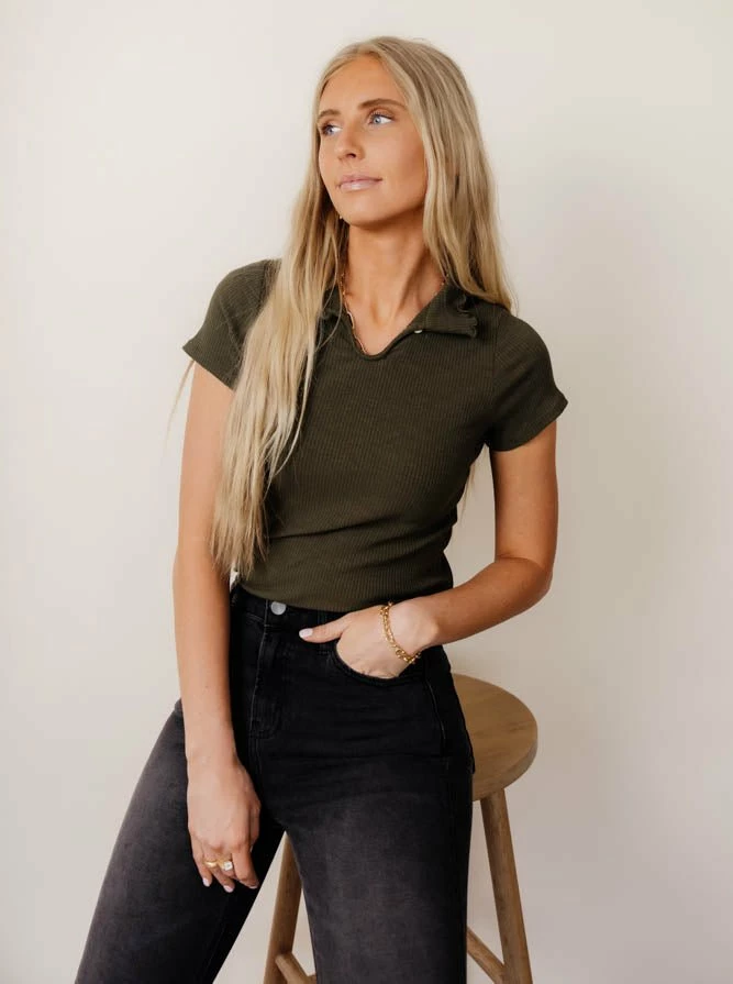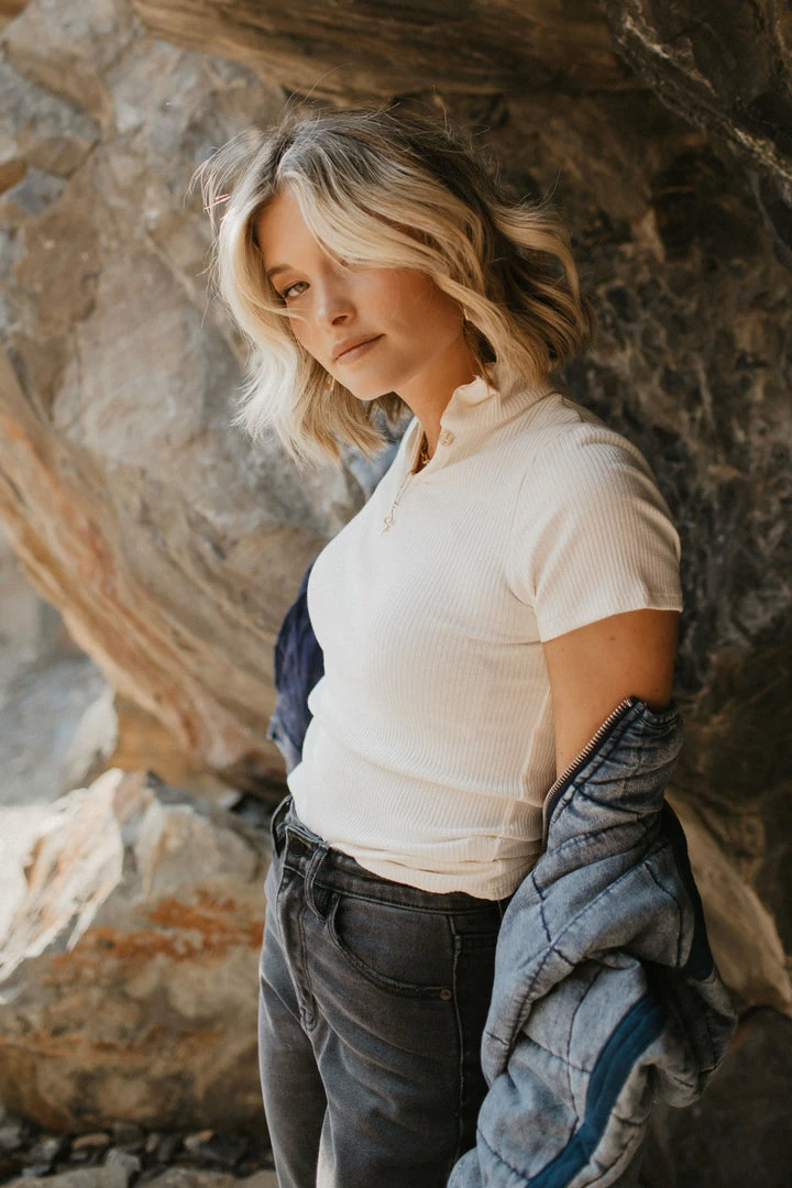 - Mock Neck Ribbed Top