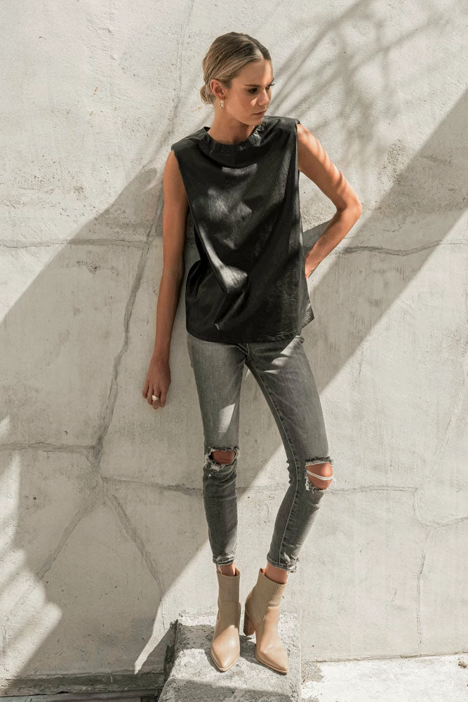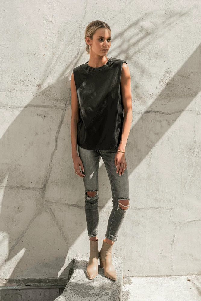 - Shoulder Pad Leather Top